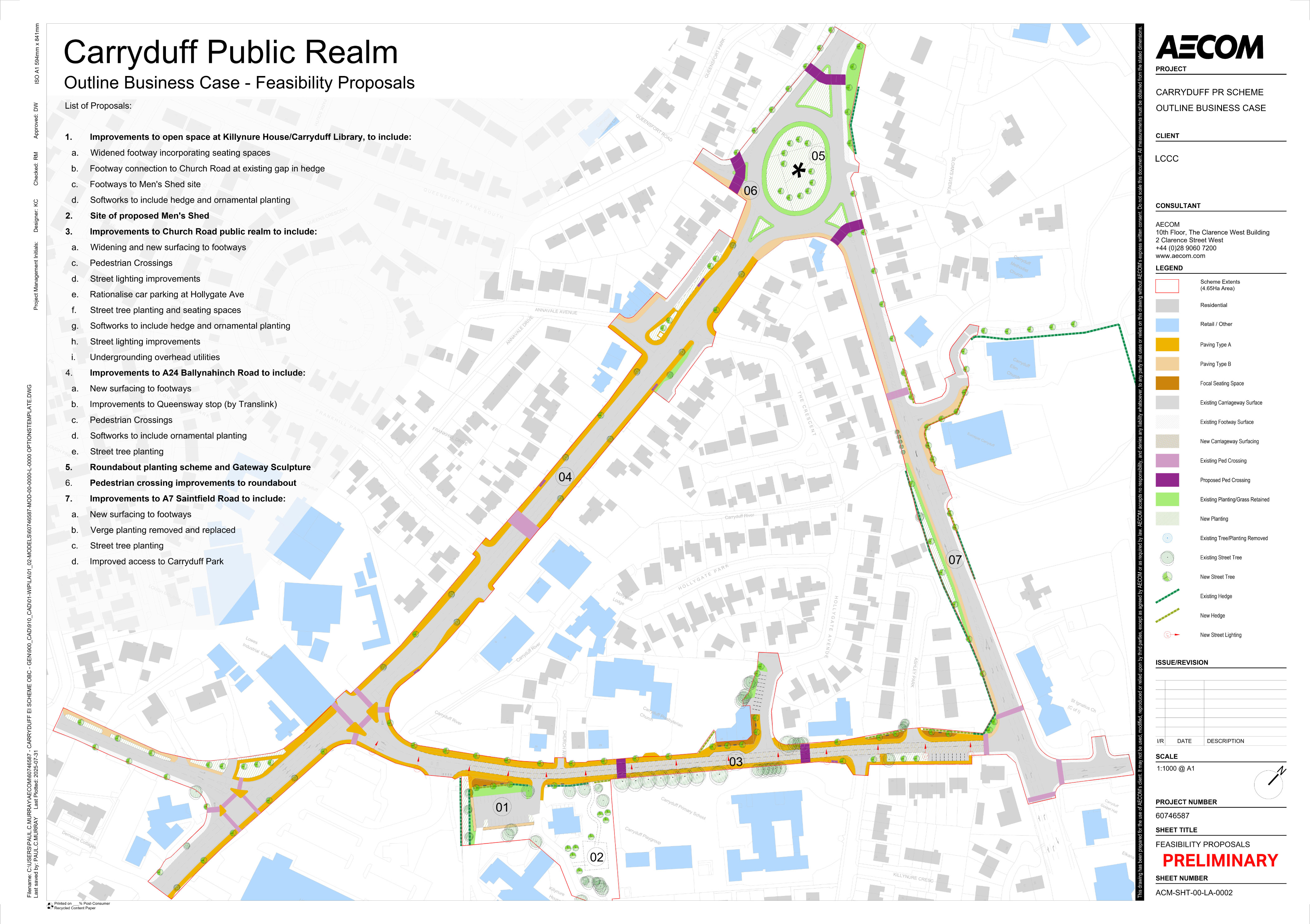 The Castlereagh Urban Framework (CUF) 2021 identified a number of projects within the Carryduff area.  We have appointed AECOM as the design team to develop Stage 1 Feasibility Proposals and an outline business case for the Carryduff Public Realm Project detailed in the CUF 2021 report.