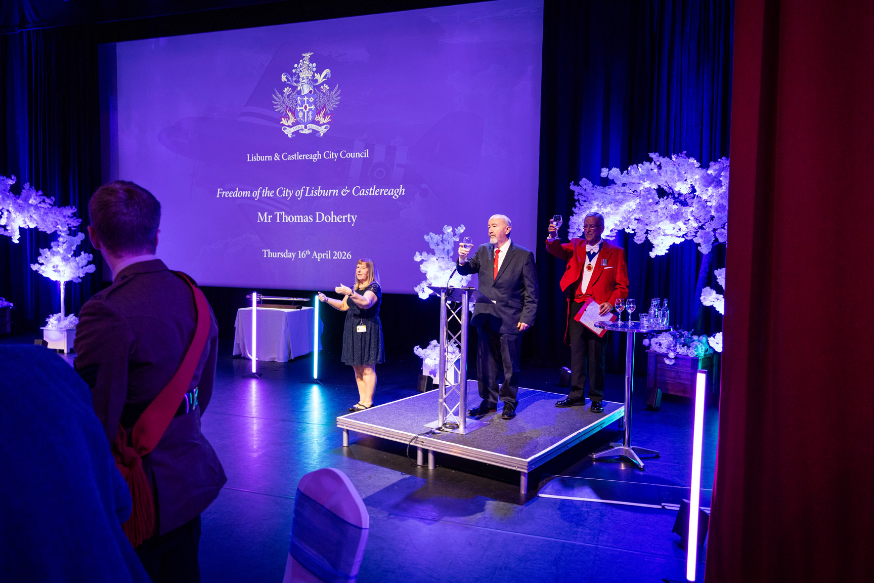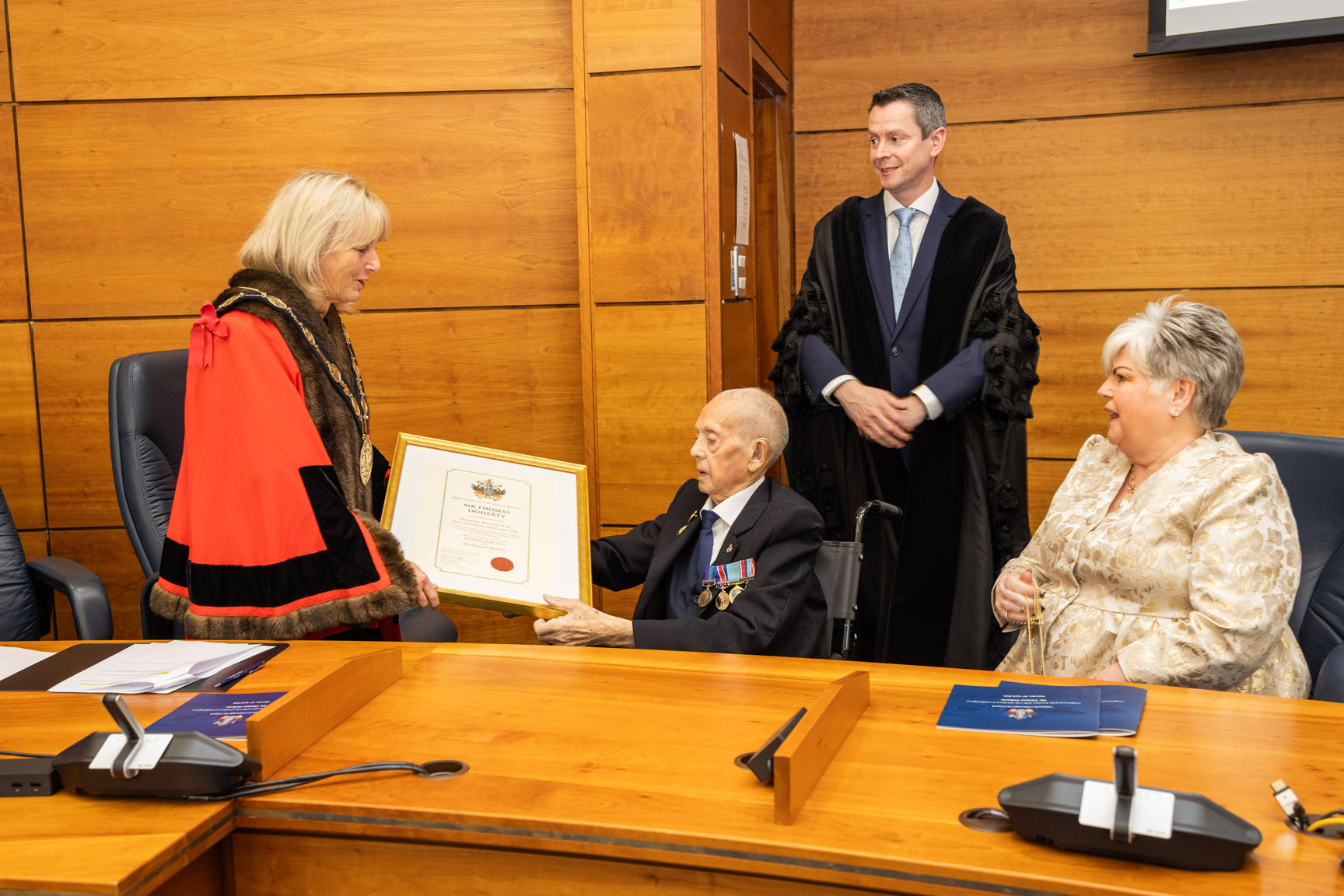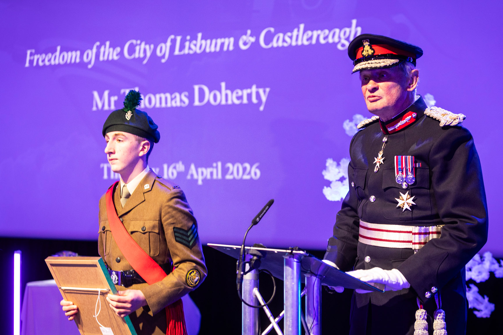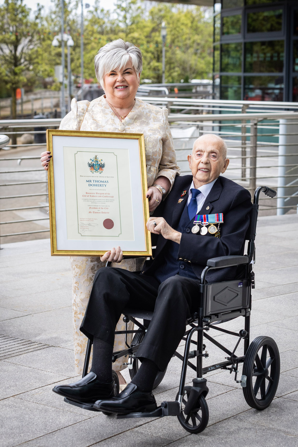 “It is a true privilege to honour Mr Thomas Doherty with the Freedom of the City. Tommy’s life is one of extraordinary service, resilience and generosity. From his contribution during wartime, to his unwavering support for veterans and his continued dedication to his local community, he represents the very best of Lisburn and Castlereagh.